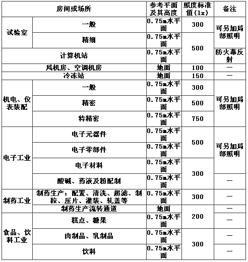 表11中的電子工業(yè)、制藥工業(yè)、精密加工、食品工業(yè)等的照度值均在本條規(guī)定的200lx~500lx范圍。本次修訂本條改為推薦性條文。