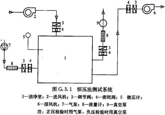 G.1.1 保持室內(nèi)為正壓或負壓均能滿足檢驗要求,但條件允許時,負壓潔凈室宜用正壓檢驗,正壓潔凈室宜用負壓檢驗。
