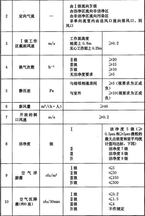 10.2.4 潔凈用房在完成本規(guī)范第10.2.2條的安裝確認(rèn)和第10.2.3條的運(yùn)行確認(rèn)后,在工程驗(yàn)收之前,應(yīng)通過對靜態(tài)性能全面測定的確認(rèn),驗(yàn)證潔凈用房及其凈化空調(diào)系統(tǒng)的綜合性能應(yīng)符合表10.2.4規(guī)定。測定方法應(yīng)按現(xiàn)行國家標(biāo)準(zhǔn)《潔凈室施工及驗(yàn)收規(guī)范》GB 50591的有關(guān)規(guī)定執(zhí)行。