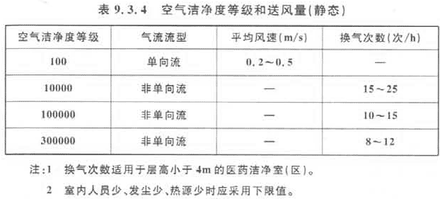 9.3.4 醫(yī)藥潔凈室(區(qū))的送風(fēng)量,應(yīng)取下列最大值: