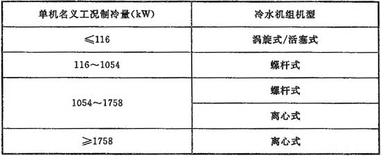 9.2.2 選擇水冷電動(dòng)壓縮式冷水機(jī)組機(jī)型時(shí),宜按表9.2.2內(nèi)的制冷量范圍,經(jīng)過(guò)性能價(jià)格綜合比較后確定。